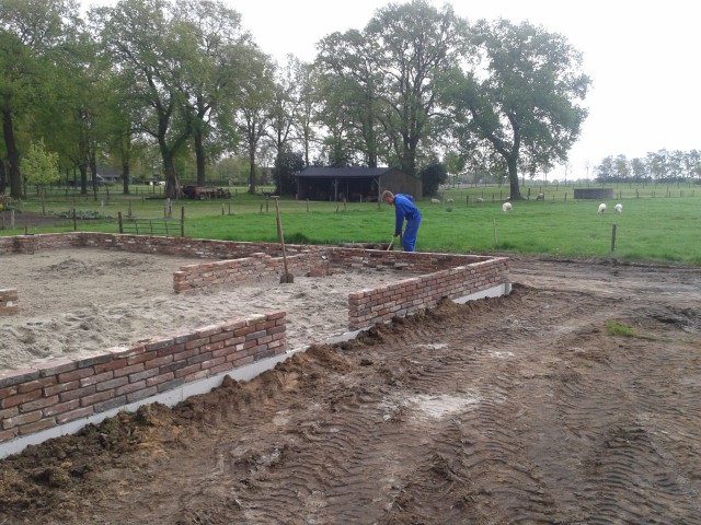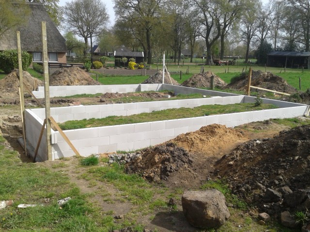 Hierop werden de funderingsmuren geplaatst,